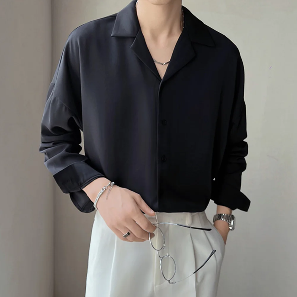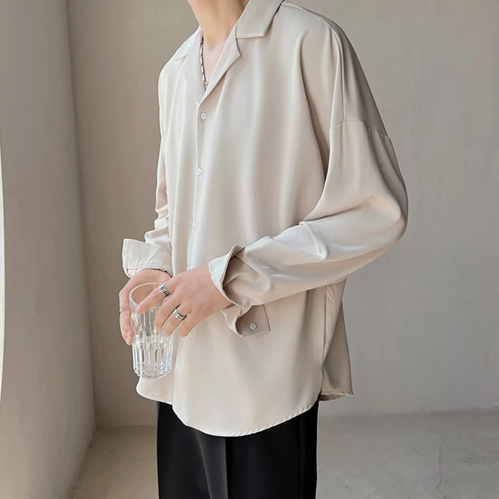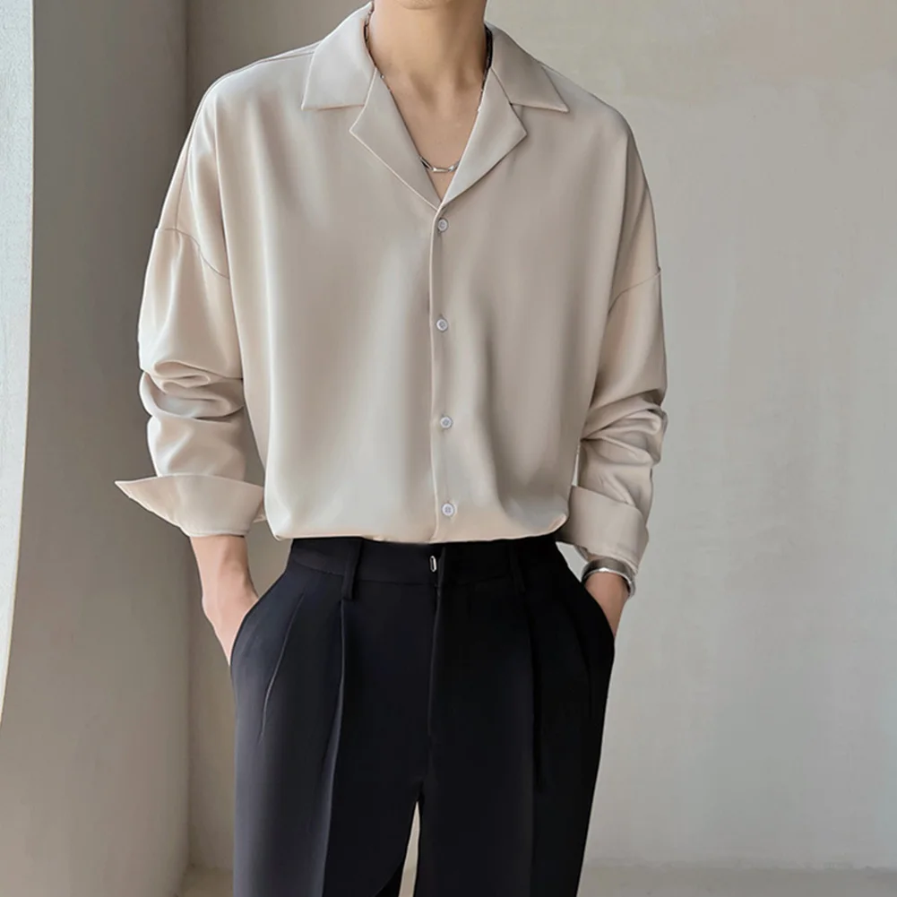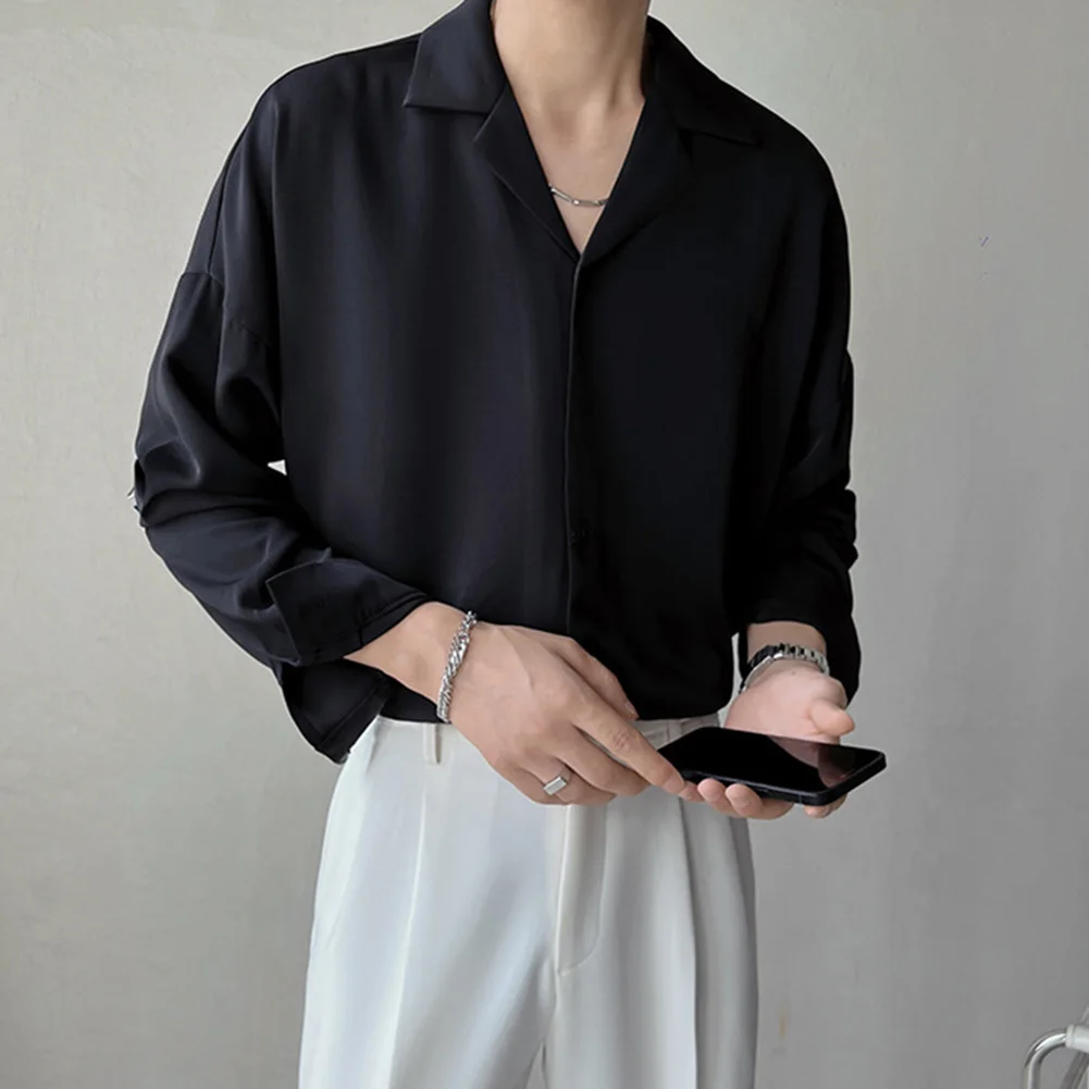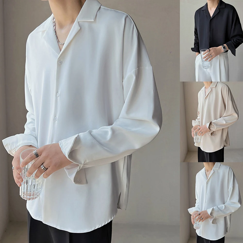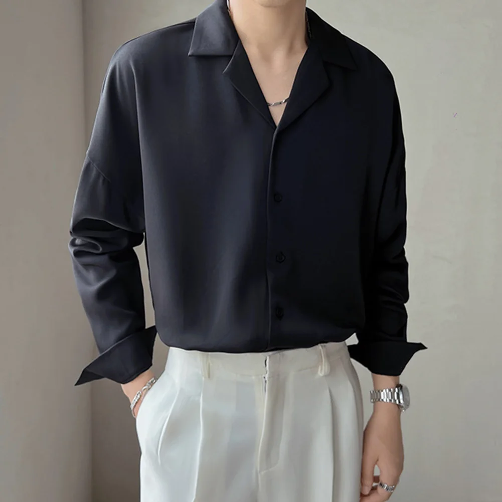 * Item Features:Mens,Lapel,Shirt,Trendy,Drape,Button Up,Loose,Silky