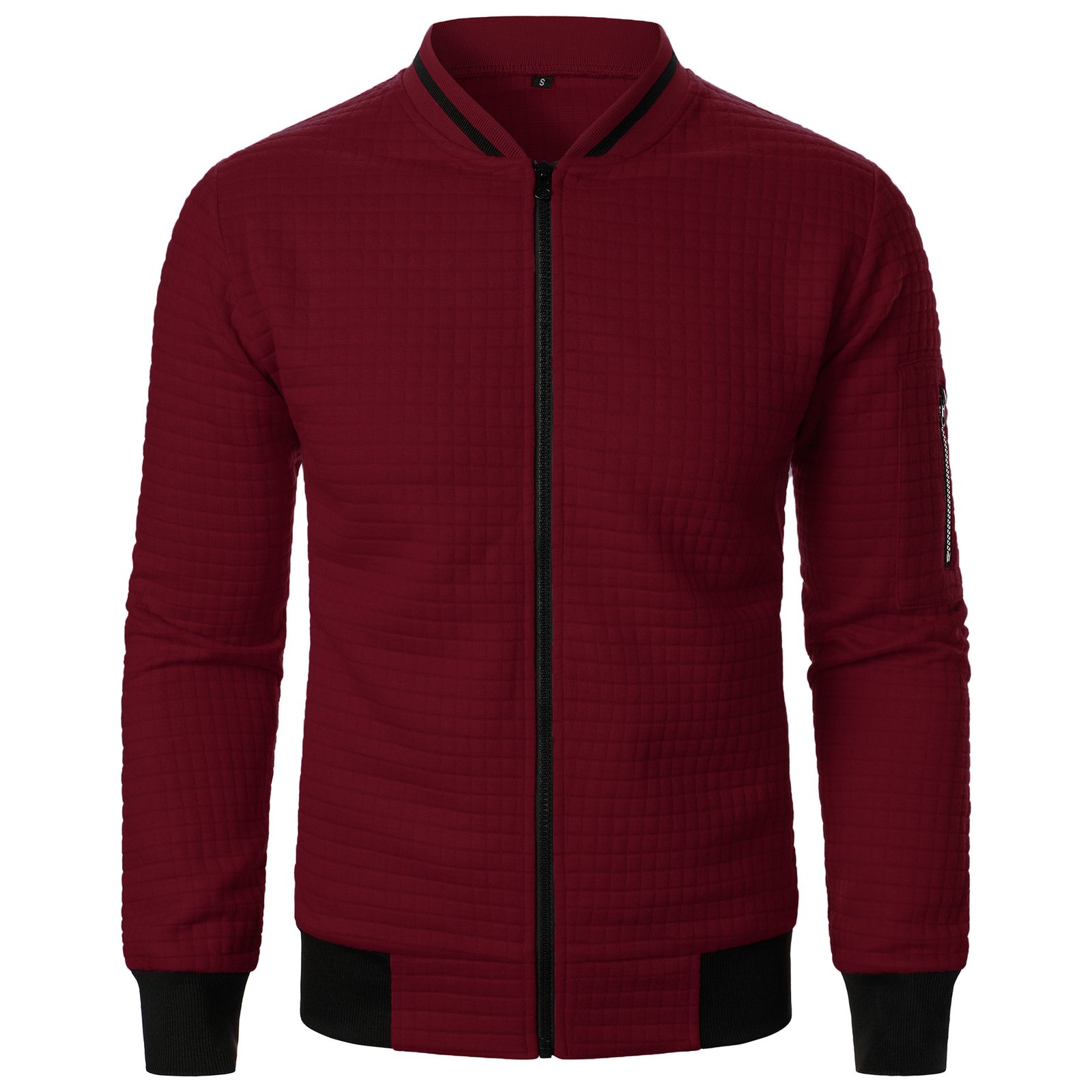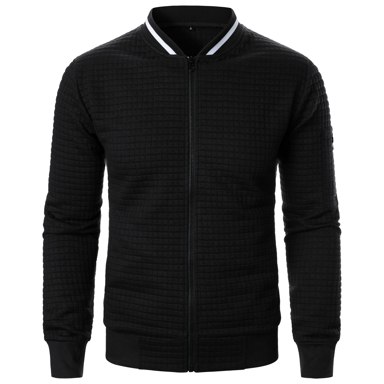 Men’s new zipper stand up collar sweatshirt jacket men’s casual plaid cardigan sweatshirt